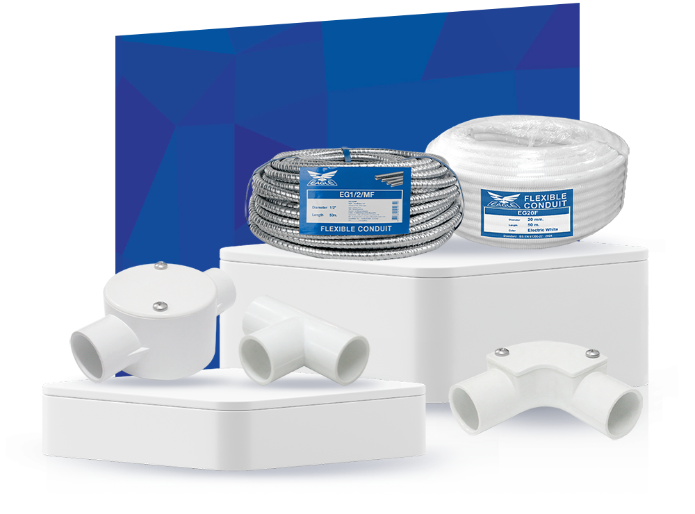 เพิ่มความปลอดภัยและความเป็นระเบียบให้กับระบบไฟฟ้าของคุณด้วยท่อร้อยสายไฟ UPVC และอุปกรณ์ข้อต่อท่อร้อยสายไฟคุณภาพสูง ที่ออกแบบมาเพื่อการใช้งานที่ยาวนาน ทนทาน และมั่นใจได้ในทุกสภาพแวดล้อม ท่อร้อยสายไฟและอุปกรณ์ข้อต่ออีเกิลเป็นทางเลือกที่ดีที่สุดในการจัดระเบียบและปกป้องสายไฟของคุณ ให้ใช้งานได้อย่างมีประสิทธิภาพและปลอดภัยยิ่งขึ้น